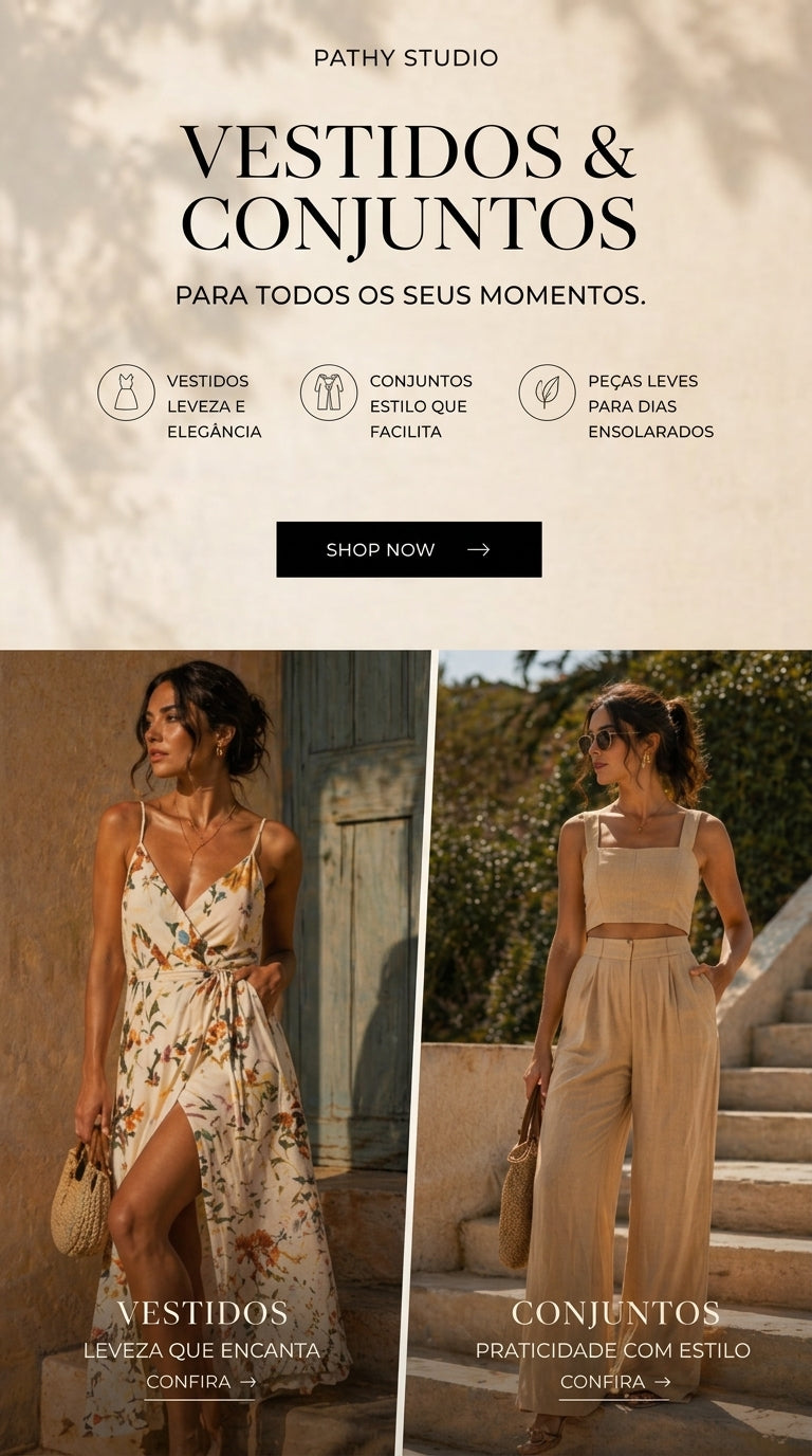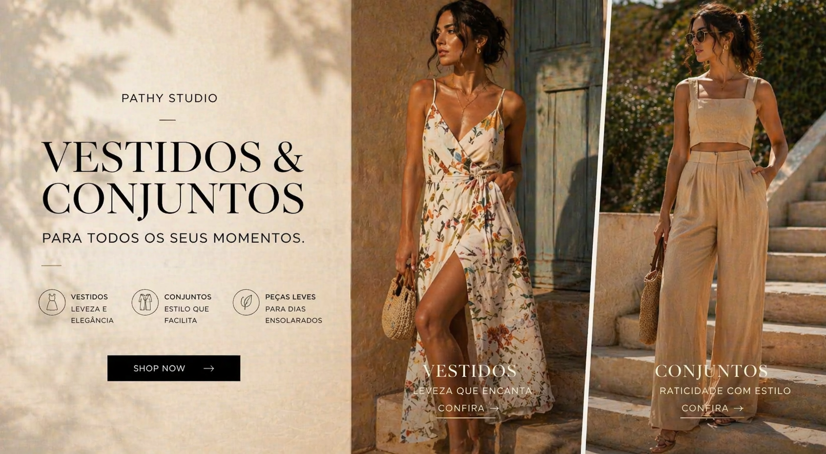 A Pathy Studio nasceu para quebrar o sistema tradicional da moda. Nós unimos o design minimalista das grandes marcas à inteligência de um guarda-roupa versátil.