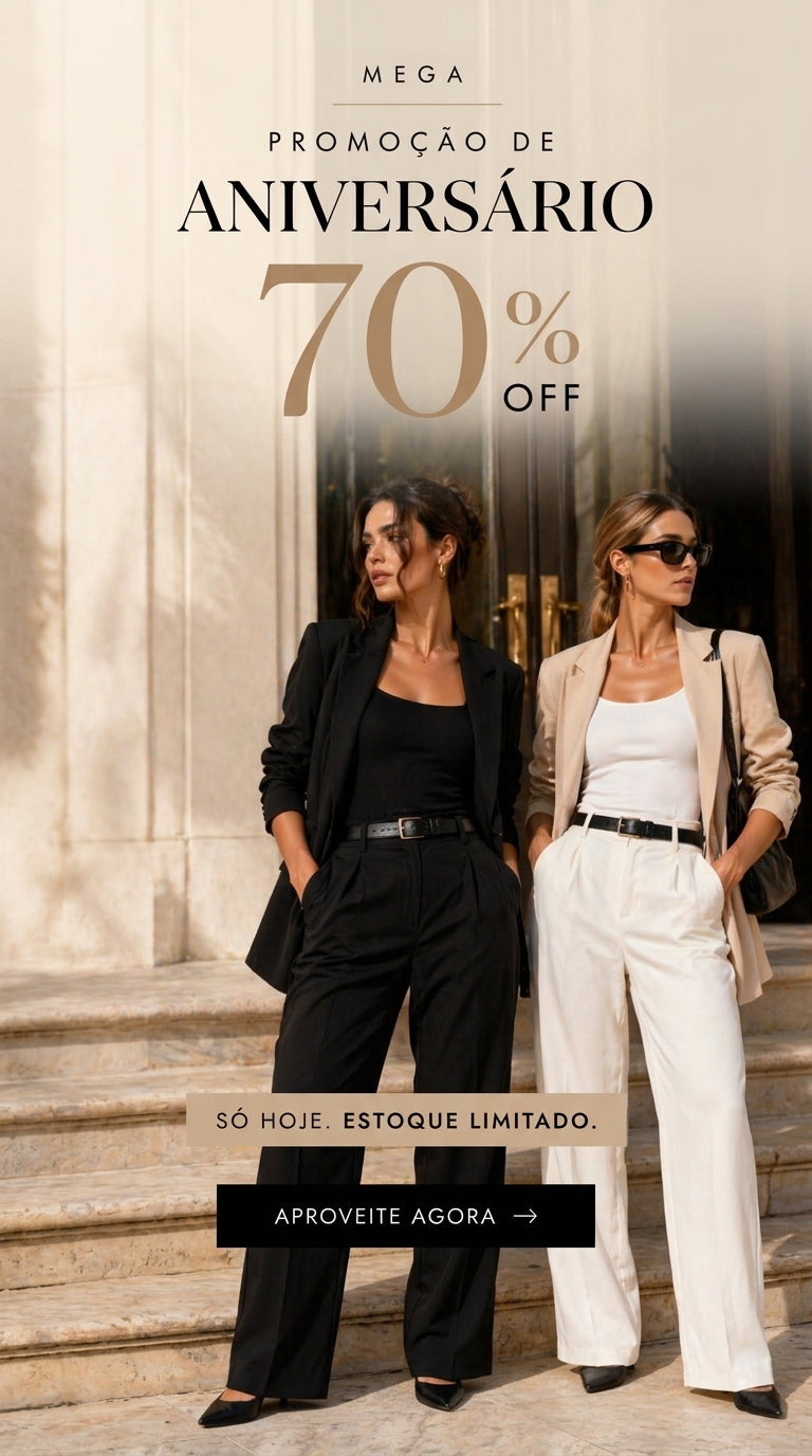 Entregamos o verdadeiro luxo acessível. Você veste a qualidade, a aura e a confiança de uma marca de alto padrão, pagando o preço justo através de compras inteligentes.